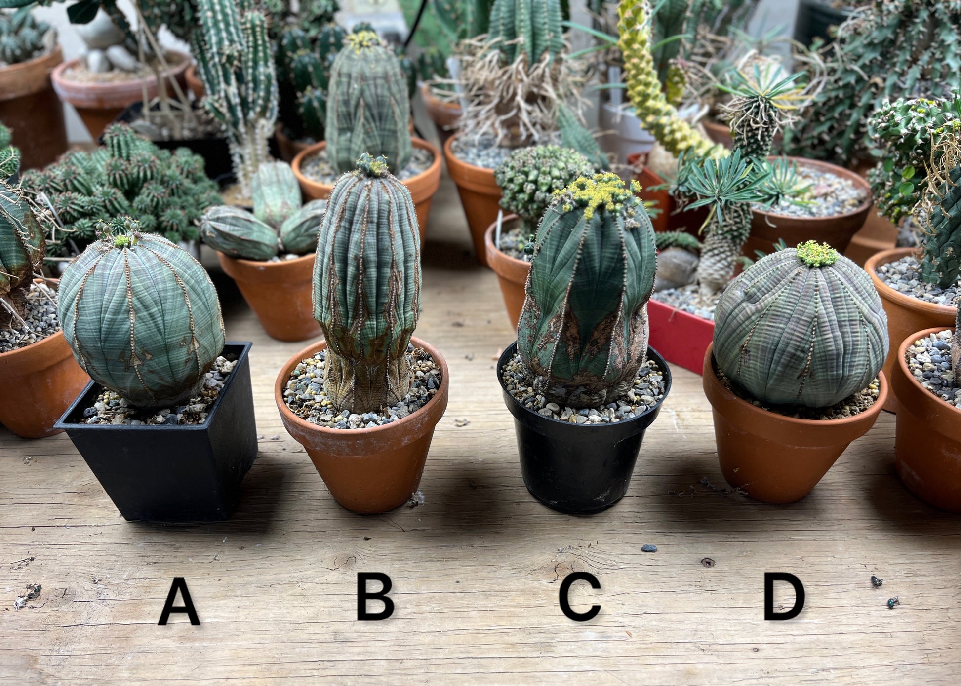 Special Notes: Euphorbia obesa represents one of nature's most elegant solutions to desert survival - perfect spherical efficiency that maximizes volume while minimizing surface area, reducing water loss to a mathematical minimum. Once endangered due to over-collection by people who couldn't resist owning a piece of living geometry, conservation efforts and cultivation programs have helped stabilize wild populations. In cultivation, each specimen becomes a daily reminder that sometimes the most profound beauty lies not in complexity, but in the perfect simplicity of a sphere that somehow learned to photosynthesize. It's mathematics made manifest, geometry given life, and proof that the universe occasionally shows off just because it can.