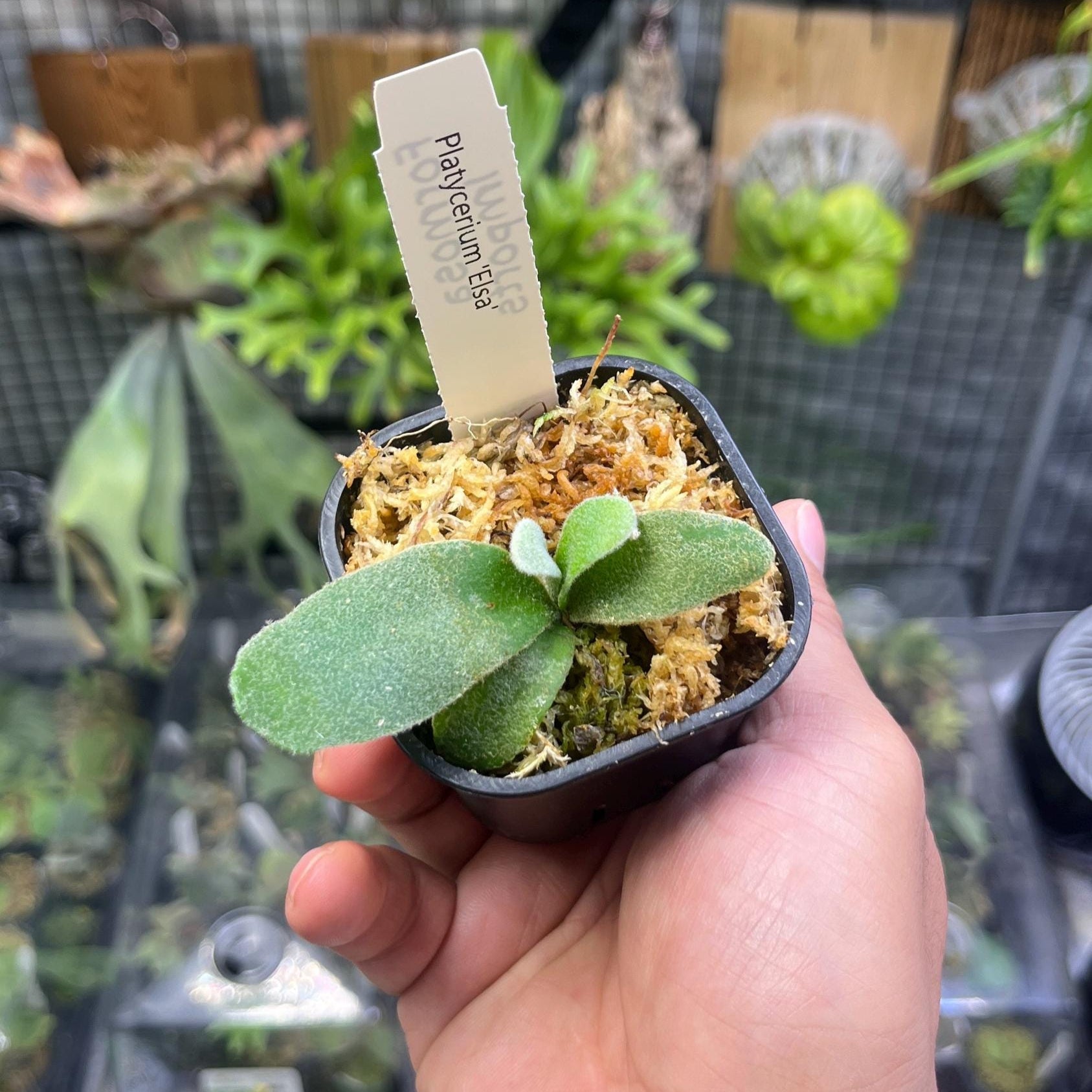 P. “Elsa” (F307) represents one of the most sought-after selections from the Snow Queen series, originally developed by Tonkla Ferntastic Garden in Thailand. This cultivar is part of the Pewchan lineage, which is a hybrid between P. veitchii (Silver Frond) × P. willinckii, combining the best characteristics of both parent species. The “Snow Queen” series is renowned for having extremely low germination rates from spores, making these cultivars particularly rare and valuable in cultivation. F307 “Elsa” is specifically noted for its compact mature size and its ability to produce spores while maintaining its diminutive stature, which is unusual among staghorn ferns. The white trichomes that give this cultivar its distinctive appearance are a genetic trait inherited from the P. veitchii parent, but expressed more dramatically in this selection. The plant is known for being somewhat challenging to grow shield fronds (basal fronds), which adds to its rarity and collector appeal. Like other members of the Snow Queen series, “Elsa” requires careful attention to humidity and air circulation to maintain the pristine white appearance of its trichomes. The compact nature combined with the spectacular white coloration makes this one of the most photographed and Instagram-worthy staghorn cultivars available. This cultivar represents the pinnacle of staghorn breeding, combining aesthetic beauty with manageable size, making it perfect for collectors who want a show-stopping specimen without the space requirements of larger staghorn species. The name “Elsa” perfectly captures the magical, frozen appearance that makes this cultivar so enchanting to staghorn enthusiasts worldwide.
