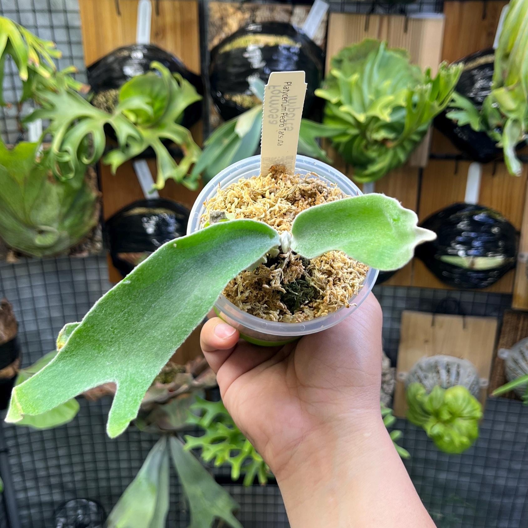 P. “Pedro Tatsuta” represents a highly sought-after variety within the prestigious Tatsuta series of willinckii cultivars, which also includes the famous “Celso Tatsuta.” The Tatsuta series appears to be named after notable figures in the staghorn collecting community, with Pedro Tatsuta being particularly valued for its unique foliage characteristics and medium size at maturity. This cultivar is considered rare and collectible, commanding premium prices in the specialty plant market due to its distinctive appearance and limited availability. The plant is suitable for collectors with some experience in staghorn care, as it requires understanding of epiphytic growing conditions and proper mounting techniques. Pedro Tatsuta maintains the classic willinckii characteristics while offering refined traits that set it apart from standard forms, making it a centerpiece specimen for serious collectors. The cultivar demonstrates the typical willinckii resilience and adaptability while providing the aesthetic appeal that makes it worthy of its collector status. Like other members of the Tatsuta series, Pedro Tatsuta represents the pinnacle of willinckii breeding and selection, offering collectors the opportunity to own a truly exceptional specimen. The plant’s ability to reach medium size at maturity makes it suitable for indoor cultivation while still providing the dramatic visual impact that staghorn enthusiasts seek. Success with this cultivar requires attention to proper mounting, appropriate lighting, and understanding of the plant’s epiphytic nature, but the reward is owning one of the most distinctive willinckii cultivars available to collectors.