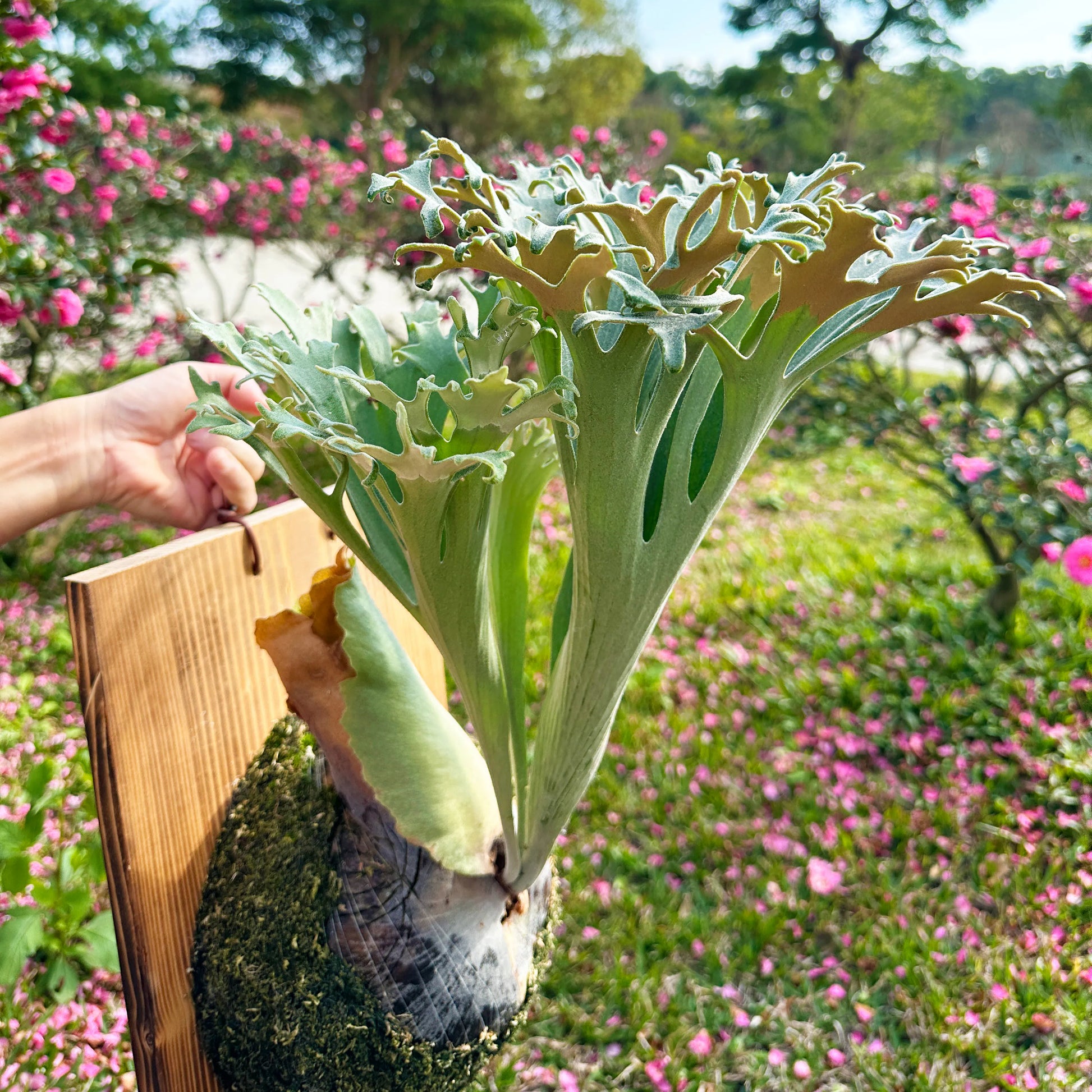 This compact little showoff is basically the class clown of the staghorn world. While other ferns are trying to look all elegant and sophisticated, Popcorn is over here like "SURPRISE! I'm your snack!" with fronds that burst open in the most ridiculously perfect popcorn-shaped clusters. It's compact, it's quirky, and it's guaranteed to make every single person who sees it go "WAIT, IS THAT ACTUALLY POPCORN?!"