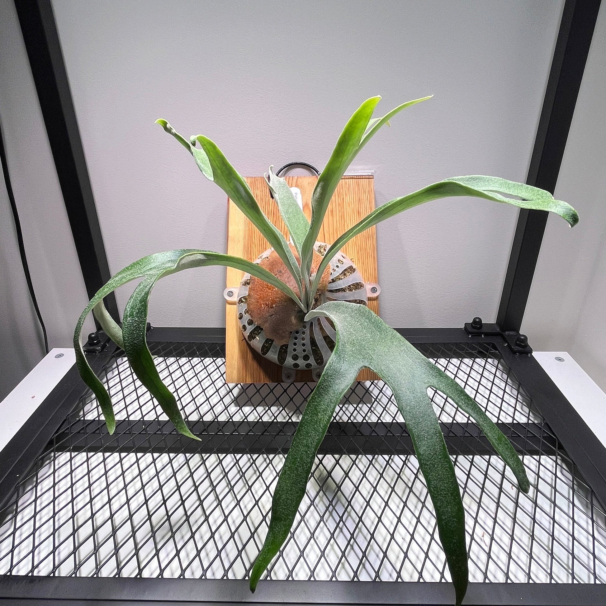 Special Notes: Rydeen is a prestigious hybrid created by renowned Thai grower Wanna Pinjipaitoon (CNX), crossing P. veitchii wild (Australian Silver) × P. Mt. Lewis. Wanna's original Rydeen mother plant won high-level awards at the 2019 Thailand Fern Competition. This hybrid is considered one of the classic collector-grade crosses, comparable to famous cultivars like 'Celso' and 'Pedro.' Despite its dramatic appearance, Rydeen is relatively heat-tolerant and easier to grow than many rare platyceriums, though growth rate is slower than common species. The name "Rydeen" (雷電) perfectly captures its explosive, lightning-like crown formation. Highly sought after by collectors for its combination of wild aesthetics and manageable care requirements. Plants have lived in greenhouse conditions from small to mature size, demonstrating good adaptability to controlled environments.